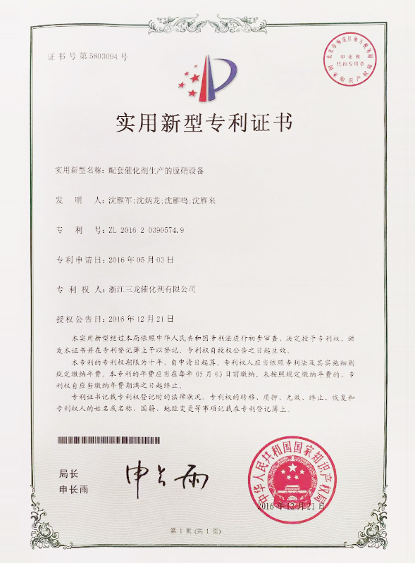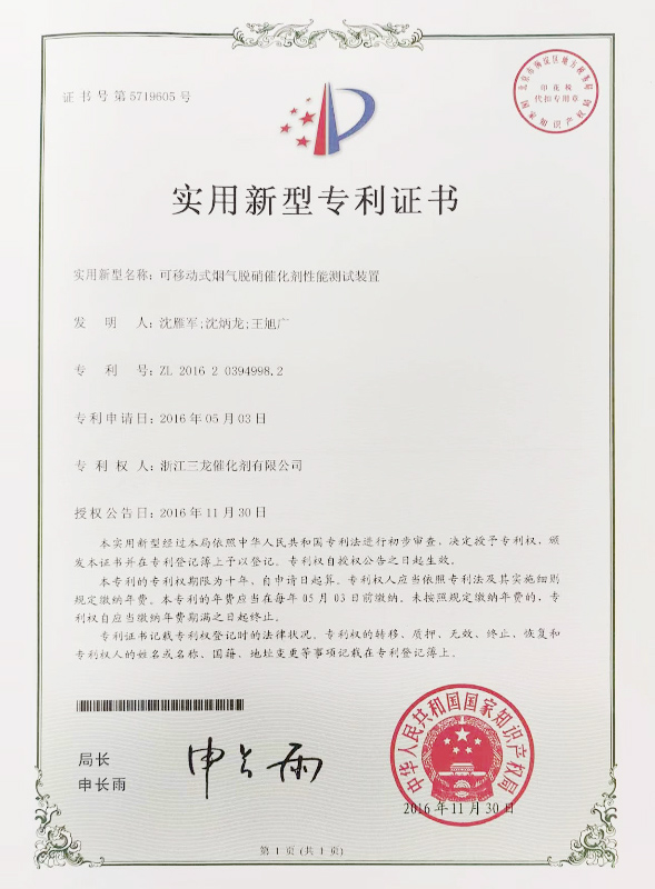 實(shí)用新型專利證書